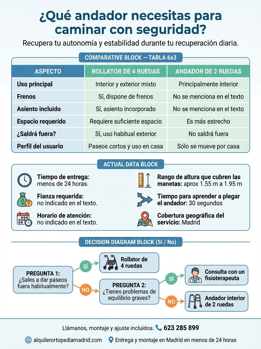 Hay un momento en la recuperación de una cirugía, o en la progresión de una limitación de movilidad, en el que caminar solo ya no es seguro pero la silla de ruedas sigue siendo demasiado. Ese es exactamente el momento para el que existe el andador.